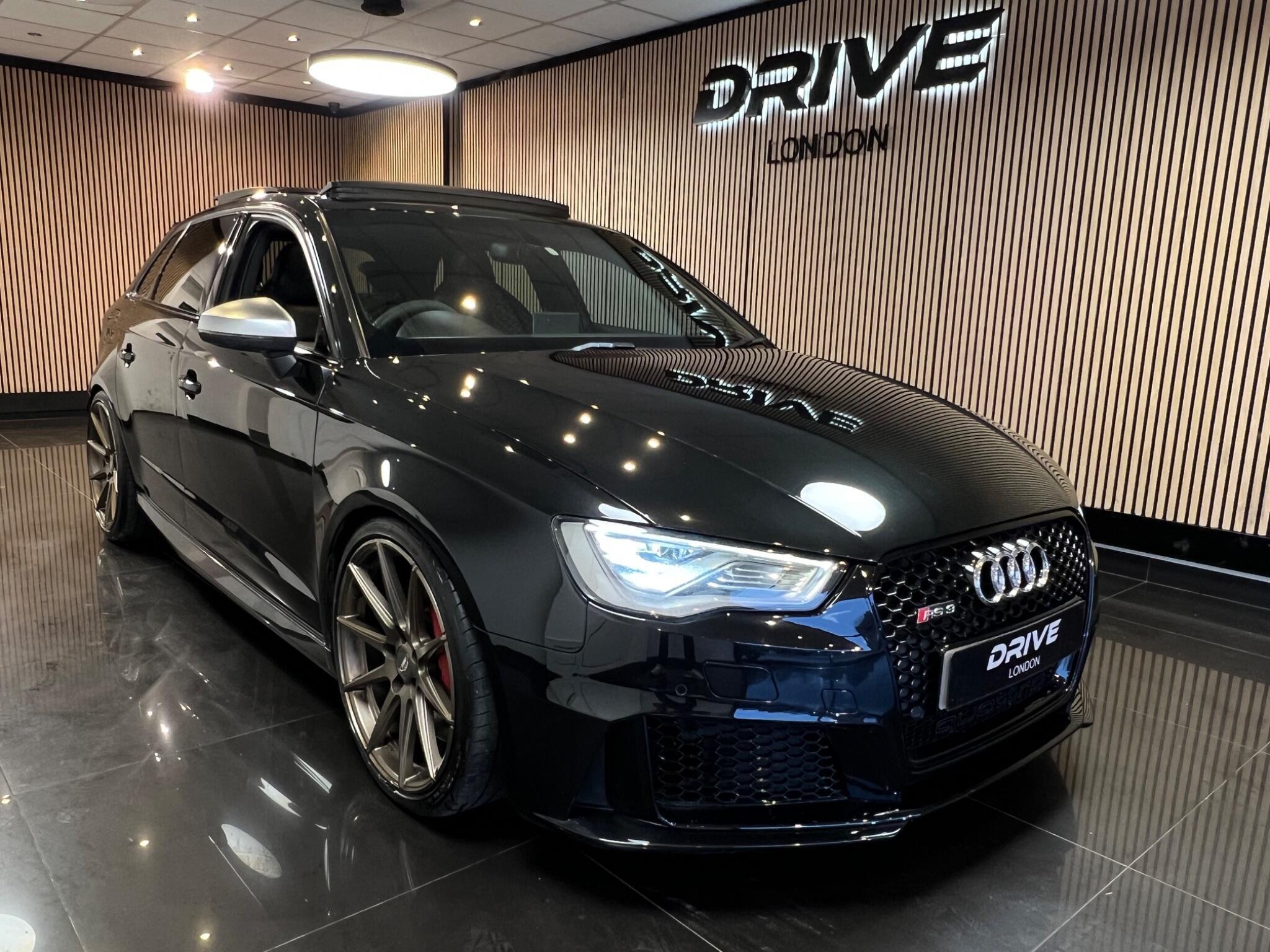 Stunning Audi RS3 2.5 TFSI Sportback finished in Black, presented in beautiful condition inside and out and clearly very well looked after. With just 68,000 miles, this car benefits from a full service history, 2 keys and comes supplied with a 1-year warranty for added peace of mind. Powered by the iconic 2.5-litre 5-cylinder engine with S Tronic automatic gearbox and quattro all-wheel drive, this example also features an upgraded exhaust for an incredible sound, an Alcantara flat-bottom RS steering wheel and striking bronze alloy wheels that really set the car off. Specification includes satellite navigation, Bluetooth, RS sports seats, Audi Drive Select, RS brakes, parking sensors, LED headlights and dual-zone climate control. ULEZ compliant, finance available and part exchange welcome.
