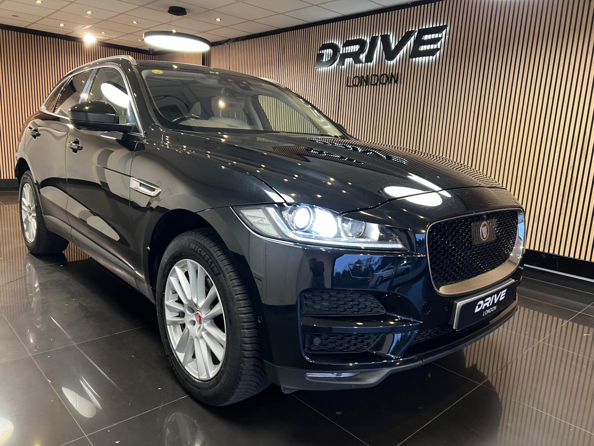 2017 Jaguar F-PACE 2.0 D180 Portfolio Auto AWD Euro 6 (s/s) 5dr, finished in sleek black with a luxurious beige leather interior, featuring a digital driver display, panoramic glass roof, heated front seats, Meridian sound system, touchscreen infotainment with navigation, Bluetooth, DAB radio, reversing camera, front and rear parking sensors, LED headlights, keyless entry and start, powered tailgate, 19'' alloy wheels, multi-zone climate control, cruise control and AWD capability for year-round confidence; a stylish, refined and reliable SUV that is priced to sell, with delivery available and finance available.