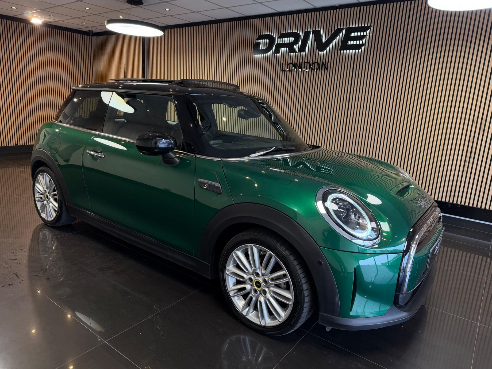 2021 MINI Electric Hatch Cooper SE Level 3 finished in stunning British Racing Green with very low mileage for the year. This well presented example comes with a great specification including black leather interior, panoramic glass sunroof, heads up display, satellite navigation, Harman Kardon premium sound system, ambient lighting, dual zone automatic air conditioning, heated front seats, digital cockpit display, MINI driving modes (Sport / Mid / Green), rear parking sensors, cruise control with speed limiter, multifunction steering wheel, Bluetooth connectivity, DAB radio, Apple CarPlay, LED headlights, electric windows, electric mirrors and ISOFIX rear seats. The car is fully electric giving smooth, quiet performance and low running costs while still delivering the fun MINI driving experience. Very clean example throughout and clearly well looked after. Price to sell, Part exchange welcome and delivery available.