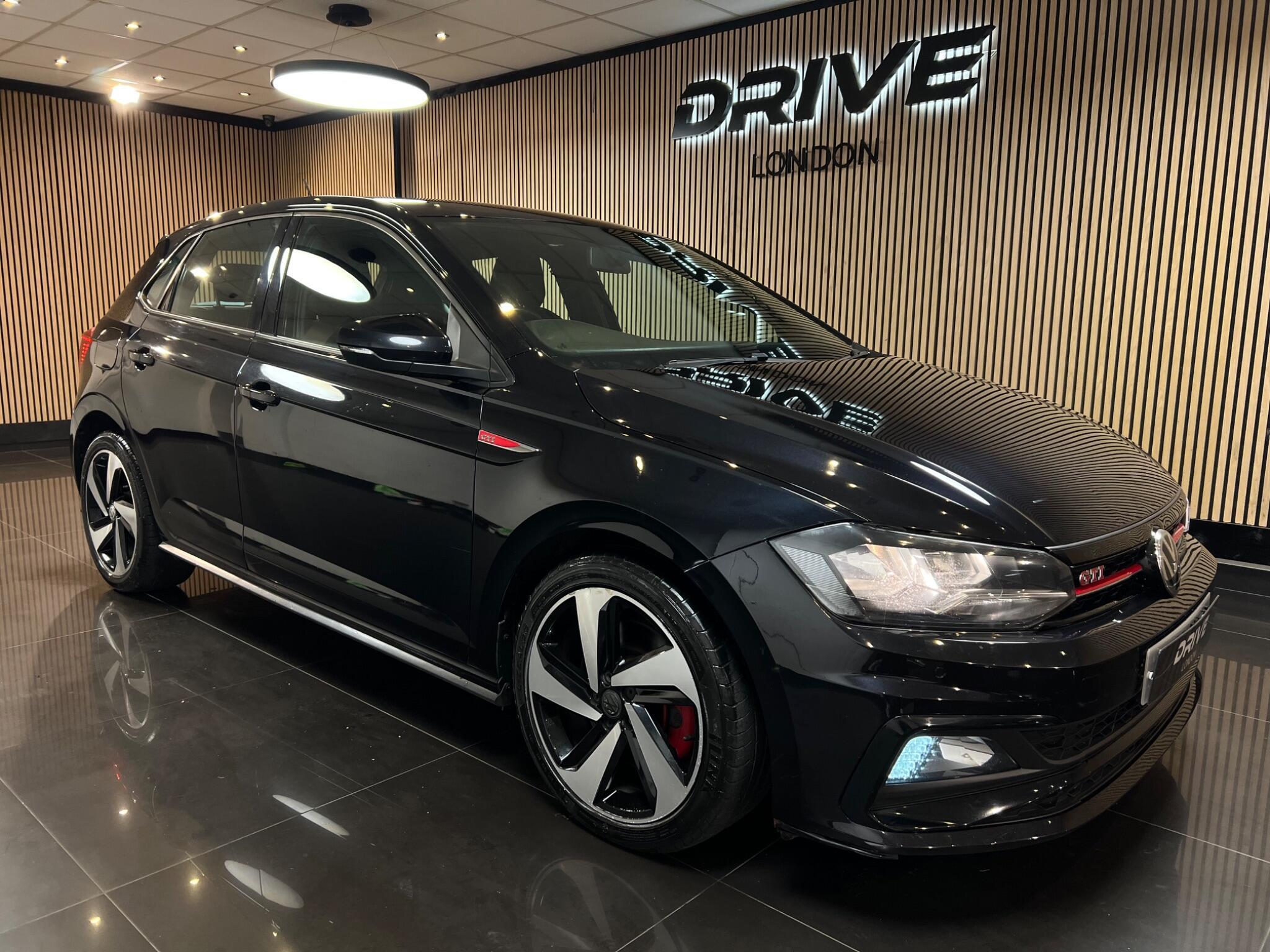 Volkswagen Polo 2.0 TSI GTI DSG Euro 6 (s/s) 5dr, 2019 (19 plate) in black with 5 doors, featuring the iconic GTI tartan sports seats in red and black, heated seats, DSG automatic gearbox, 17-inch polished alloy wheels, LED headlights with daytime running lights, front and rear parking sensors, adaptive cruise control, Apple CarPlay/Android Auto, touchscreen infotainment system, Bluetooth, DAB radio, automatic lights and wipers, climate control, red brake calipers, GTI body styling, full service history, priced to sell, all inspections welcome and delivery available.